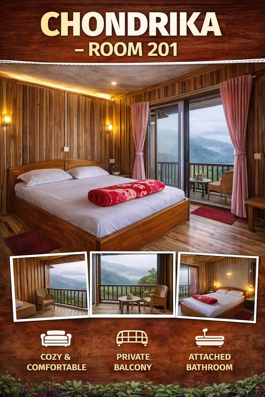 এই রুমটি Chondrika Eco Resort-এর অংশ, যেখানে মোট ৪টি রুম রয়েছে—ছোট পরিসরে এক্সক্লুসিভ ও শান্ত স্টে নিশ্চিত করতে।