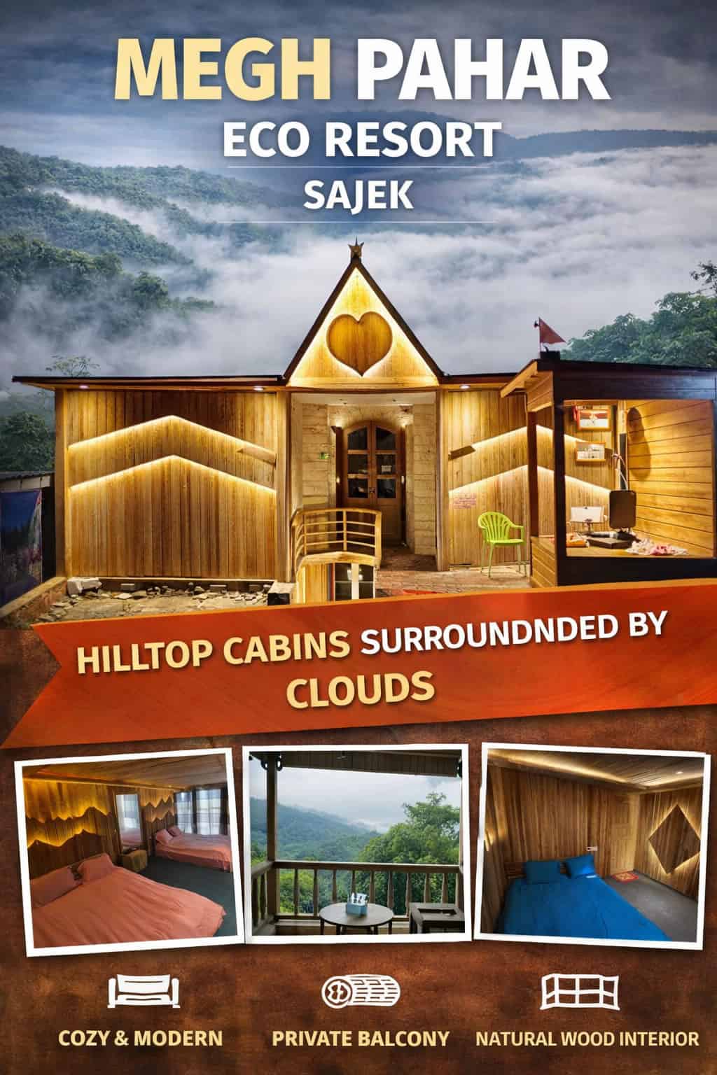 Megh Pahar Eco Resort offers beautifully crafted wooden cottages that provide guests with a unique, peaceful, and comfortable stay surrounded by nature. To ensure your safety and to preserve the natural beauty and charm of the cottages, we kindly request all guests to follow the guidelines below: